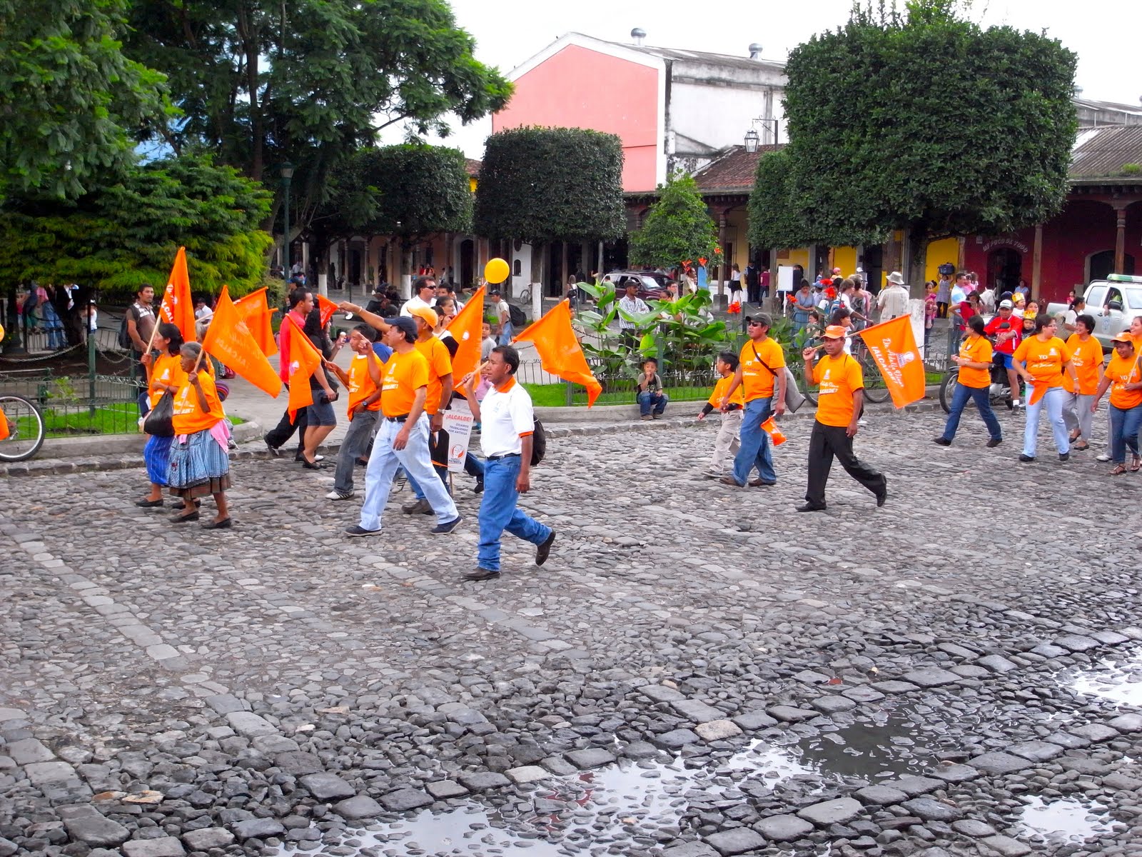 そしてオレンジの集団。選挙の運動らしいですが日本と違います。