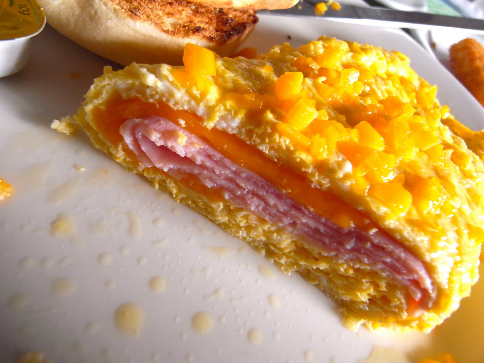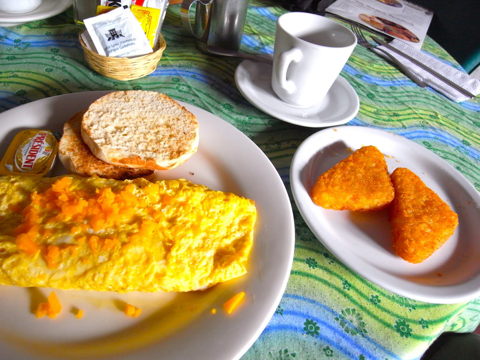 大きなチーズオムレツを頬張り、ポテトを揚げたやつを頬張り、手製サンドイッチにして頬張り、大満足。