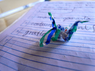 暇だったから目の前にあったで飴の包み紙で鶴を折ったら先生が教えてくれと。