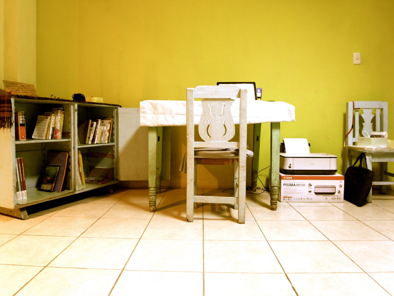 夜中に、家にちょうどいい机があったのでそれを使うことにしました(笑)