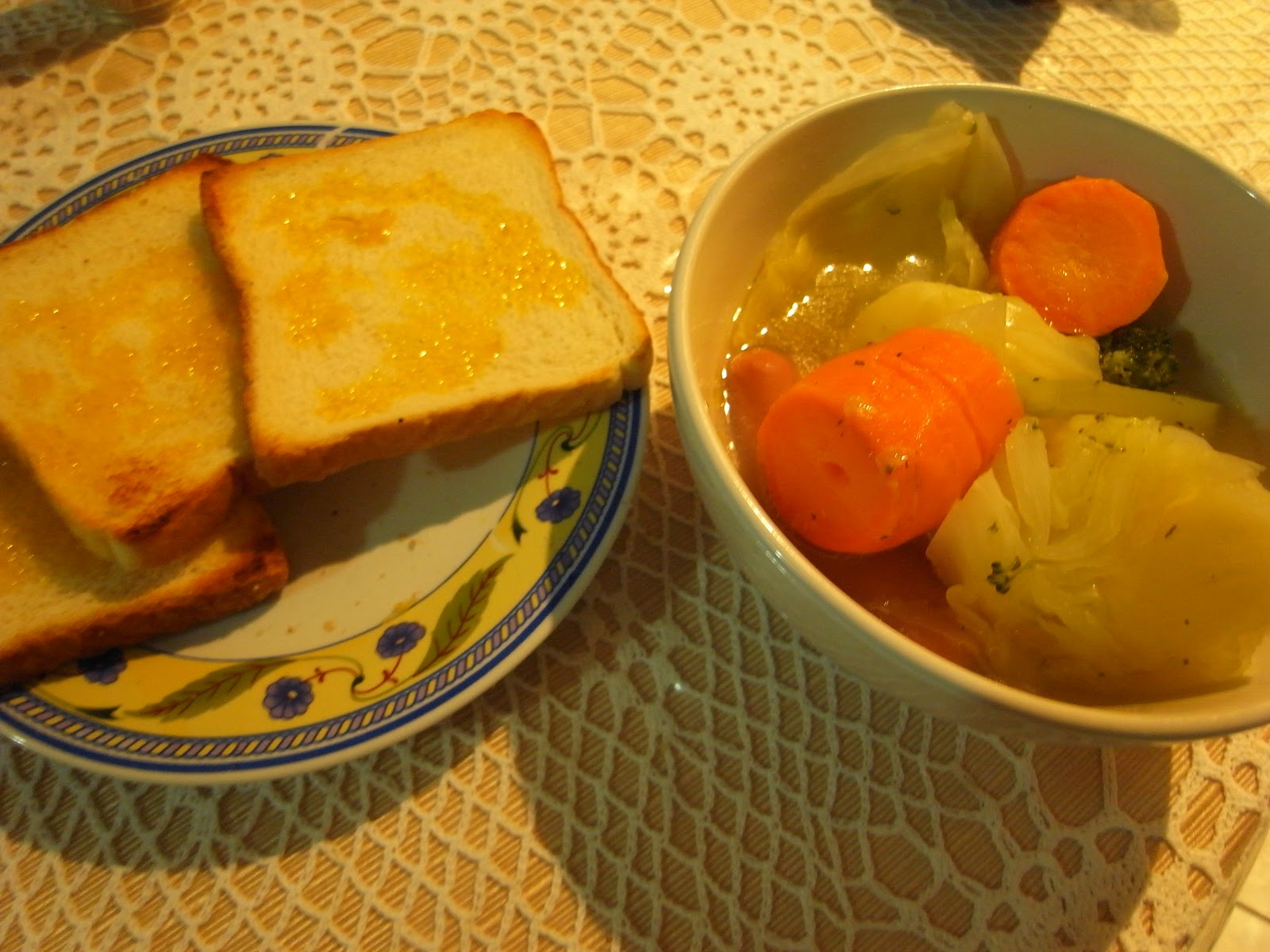 以前ママとガーリックバターを作ったのでそれをパンに塗って一緒に食べました。
